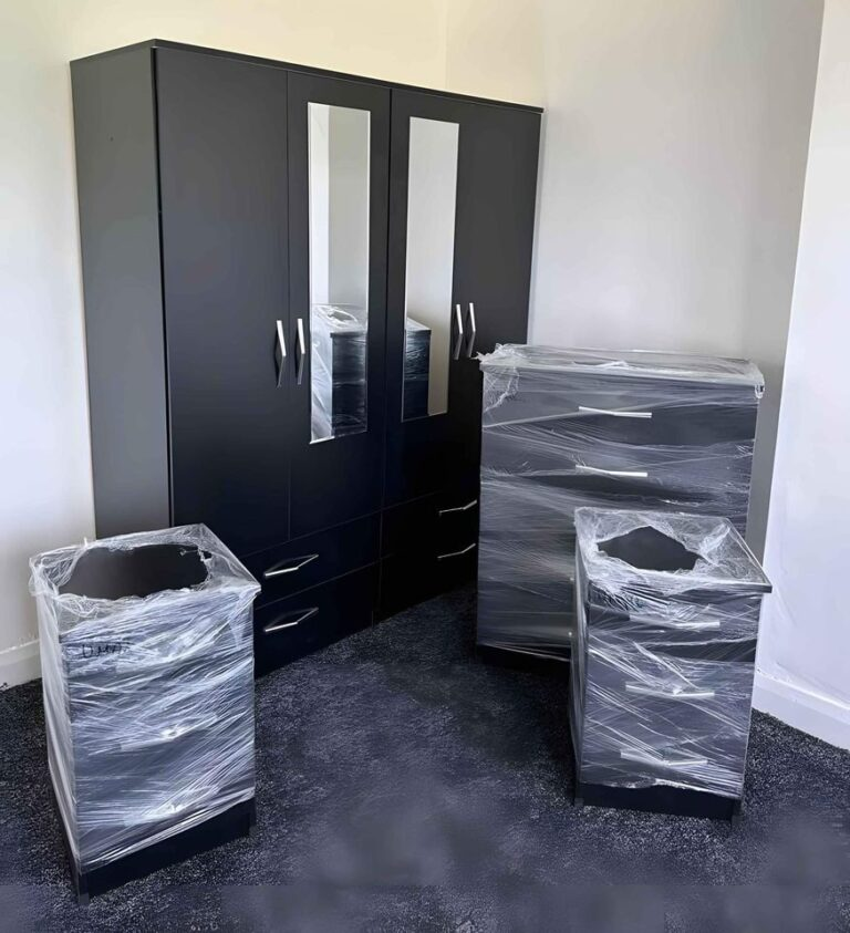 Looking for a complete bedroom storage solution that blends style, convenience, and smart design? This 4-door mirrored wardrobe set in sleek black ticks all the boxes for modern UK homes—no assembly required. With matching drawers and bedside cabinets included, it’s a seamless way to refresh your space in one go.