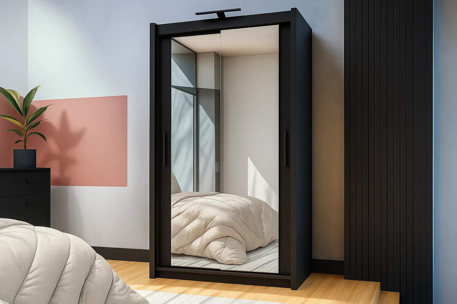 Full-length mirrored sliding doors