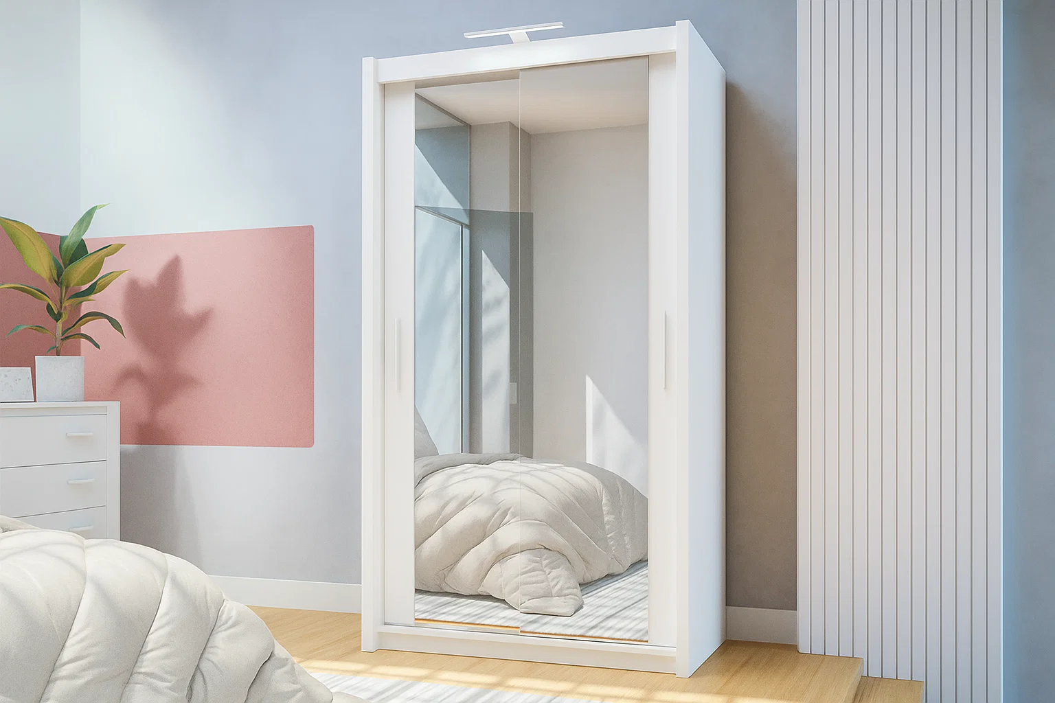 The 120cm mirrored Sliding Door Wardrobe comes with big full-length mirrors on the doors. As a result, you can check your outfit from head to toe with ease. At the same time, the mirrors reflect light and make the room feel larger and brighter.