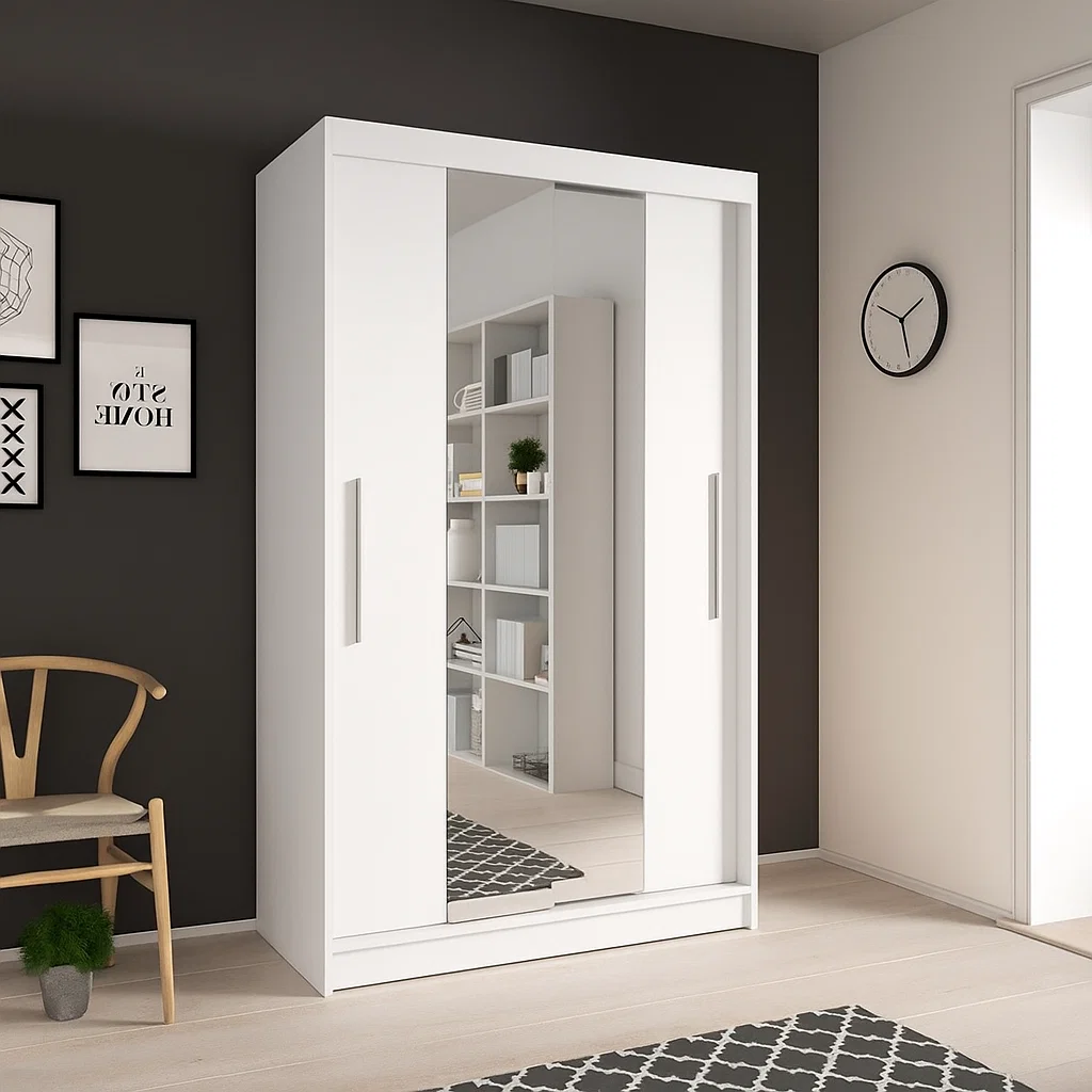 The wardrobe is built to last. It is made from strong 16mm board and has a smooth matte finish. The doors slide quietly and smoothly every time, while the shiny chrome handles add a stylish modern touch.
