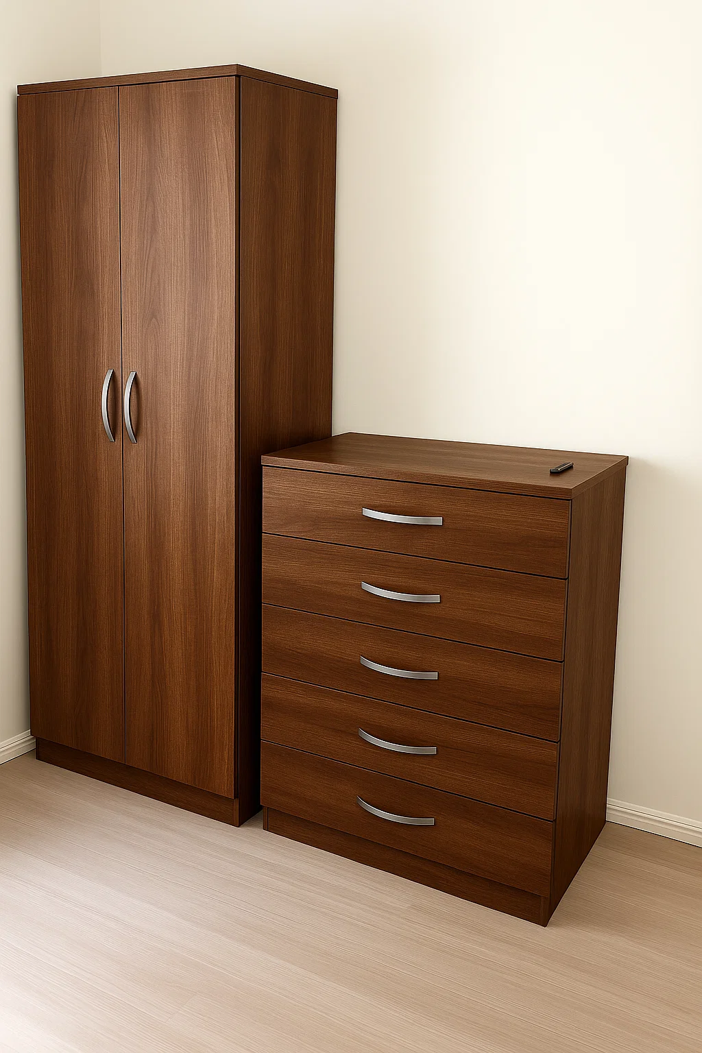 The wardrobe has a full-width rail for hanging shirts, dresses, and jackets. Next to it, the chest of drawers is perfect for folded items like T-shirts, jumpers, and daily essentials. Together, they give you everything you need to organise your room without taking up too much space.