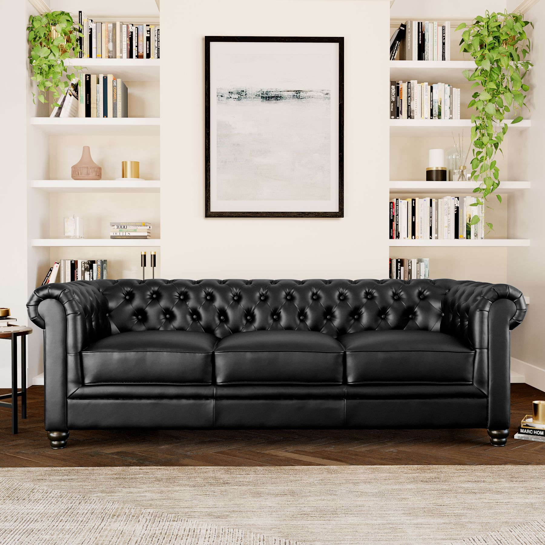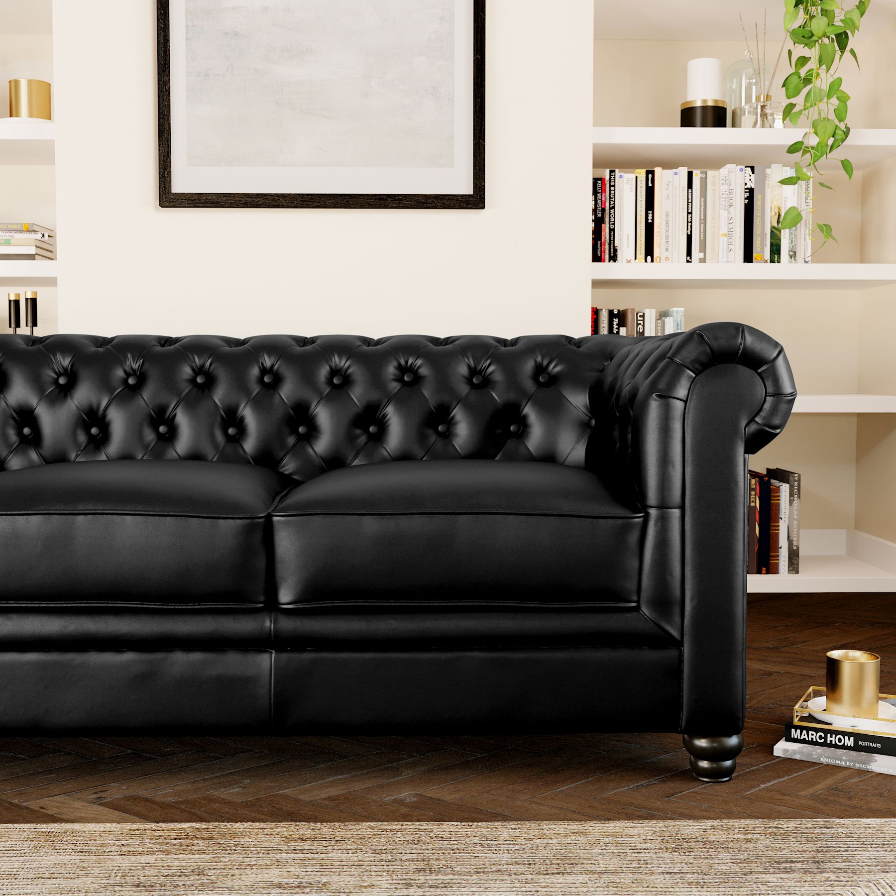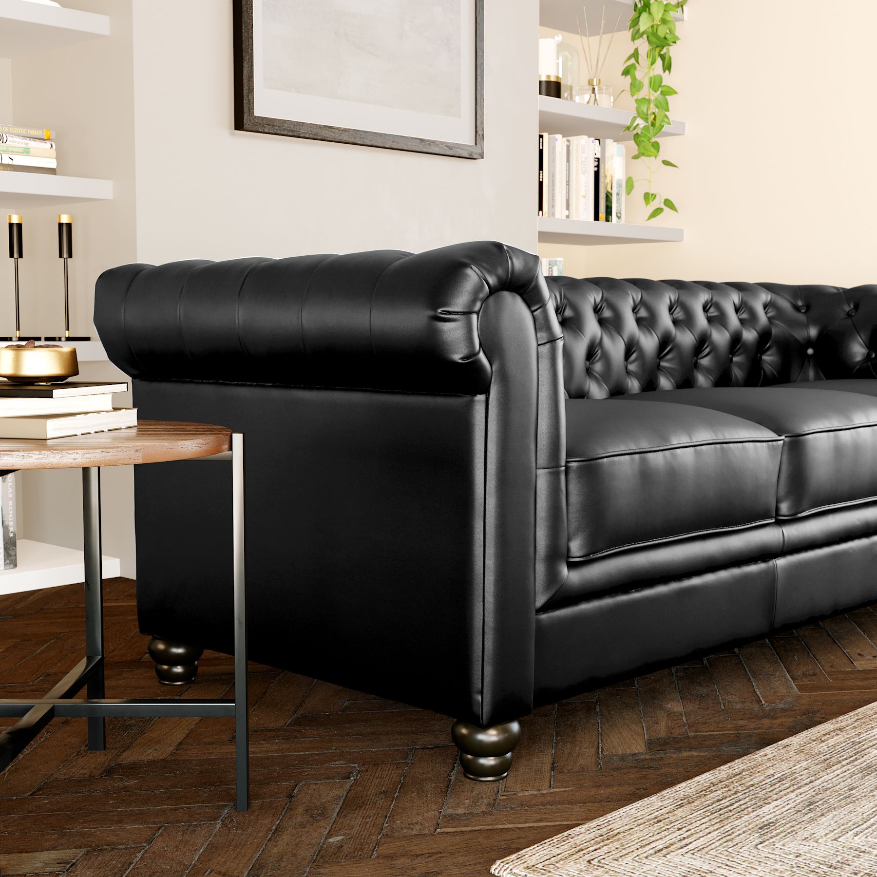 Hampton 3 Seater Chesterfield Sofa, Black Premium Faux Leather