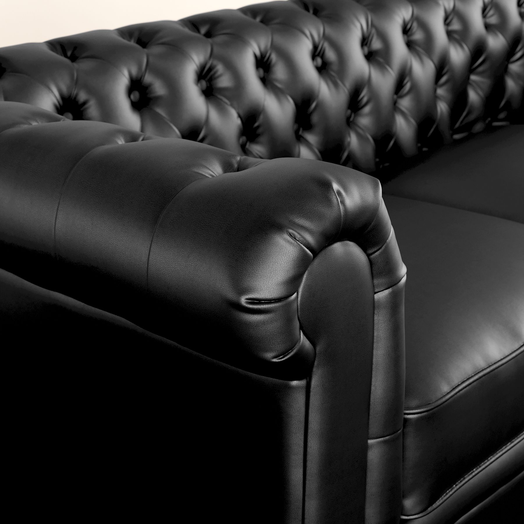 Hampton 2 Seater Chesterfield Sofa, Black Premium Faux Leather