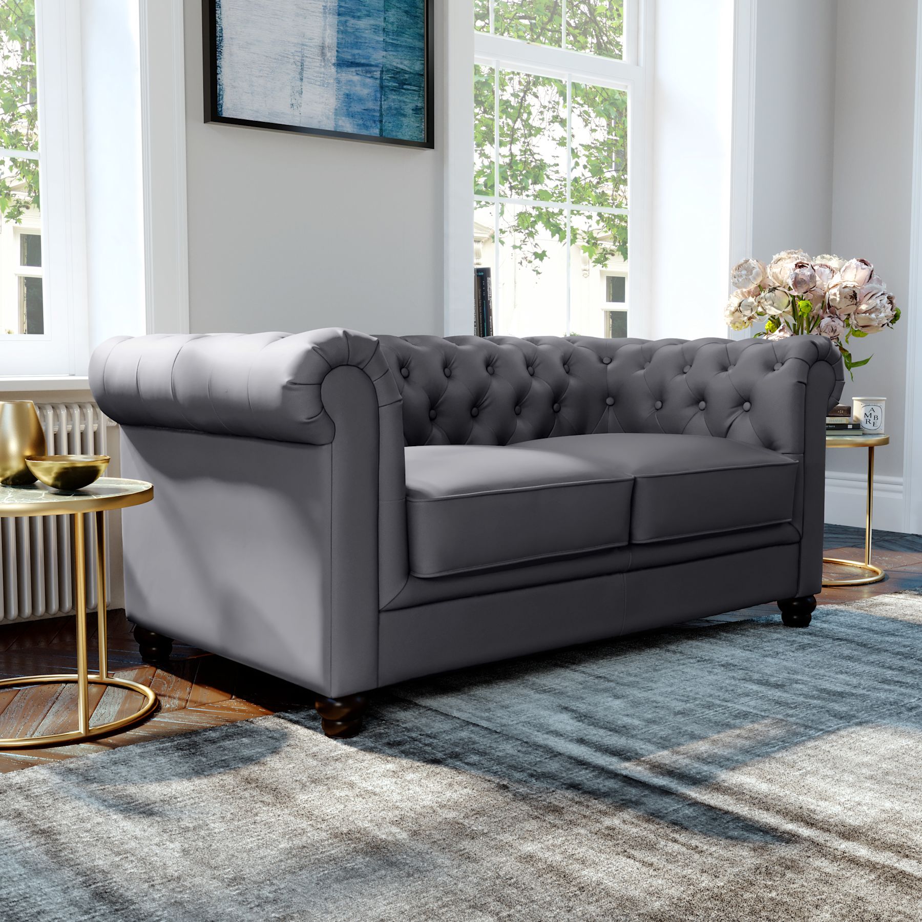 Hampton 2 Seater Chesterfield Sofa, Grey Premium Faux Leather