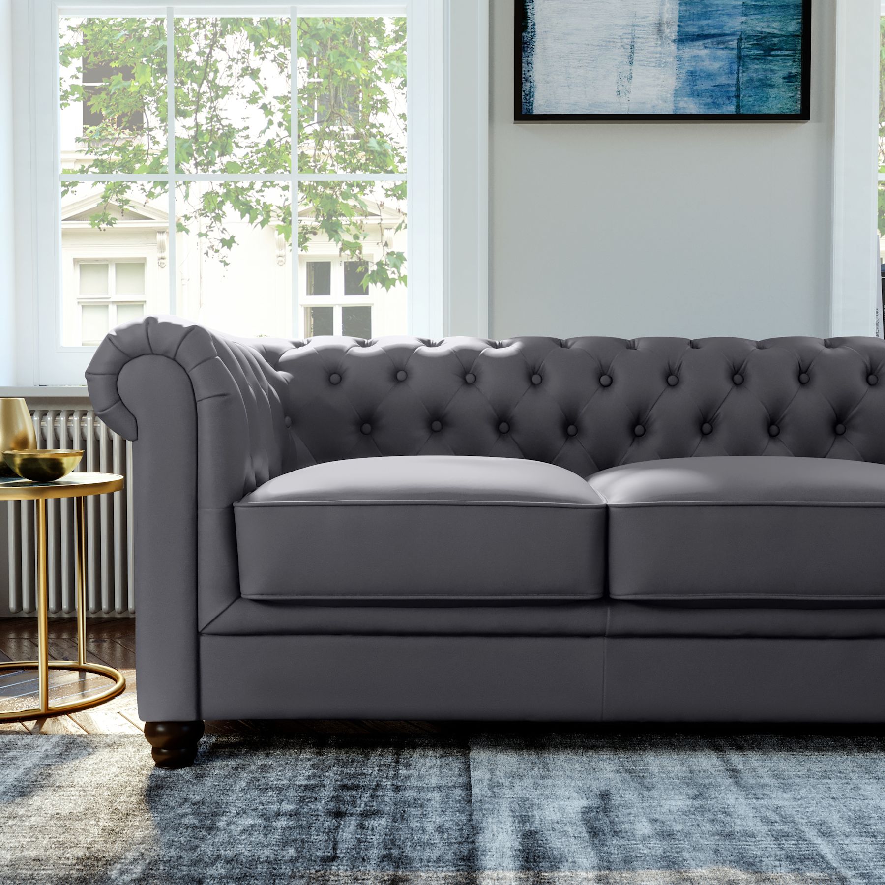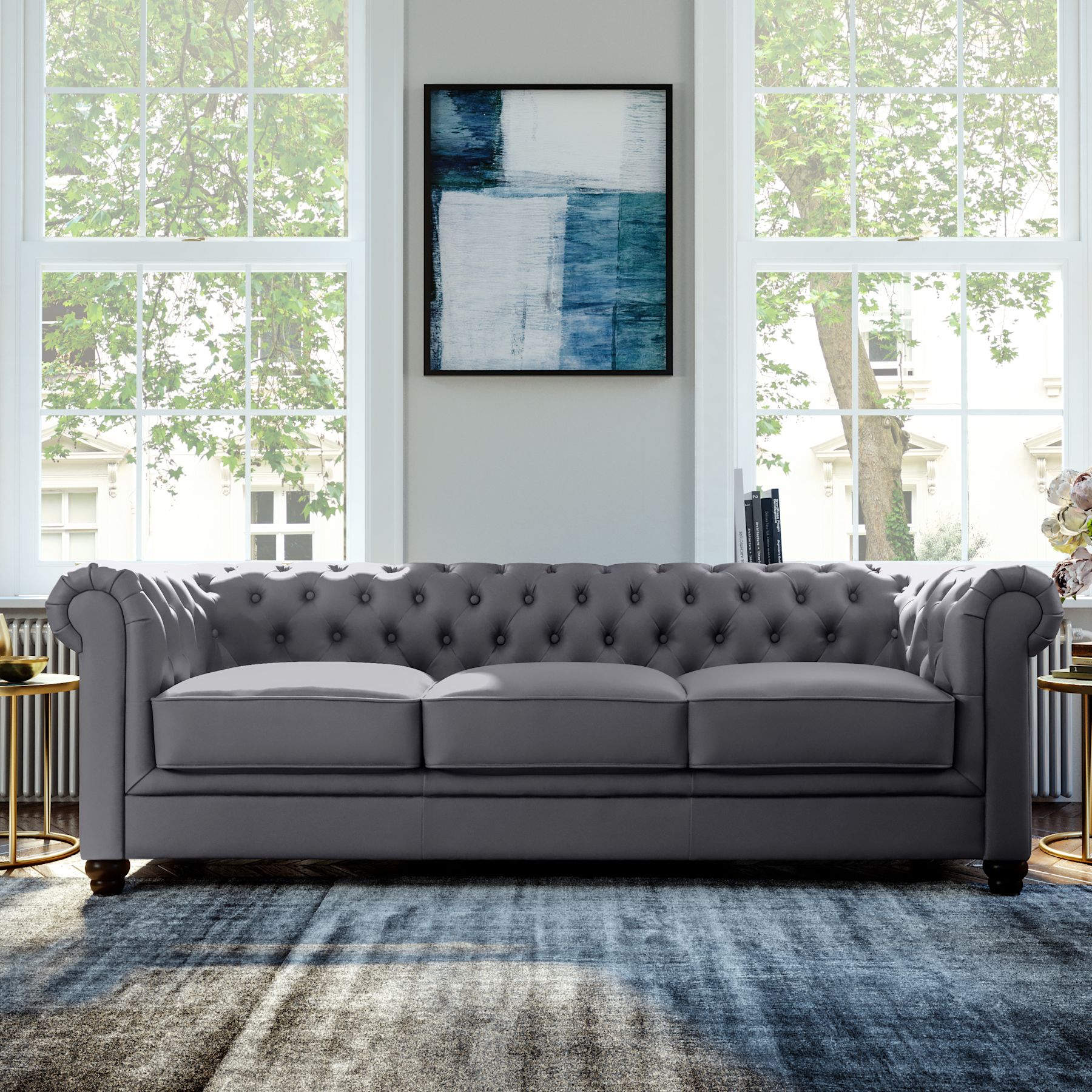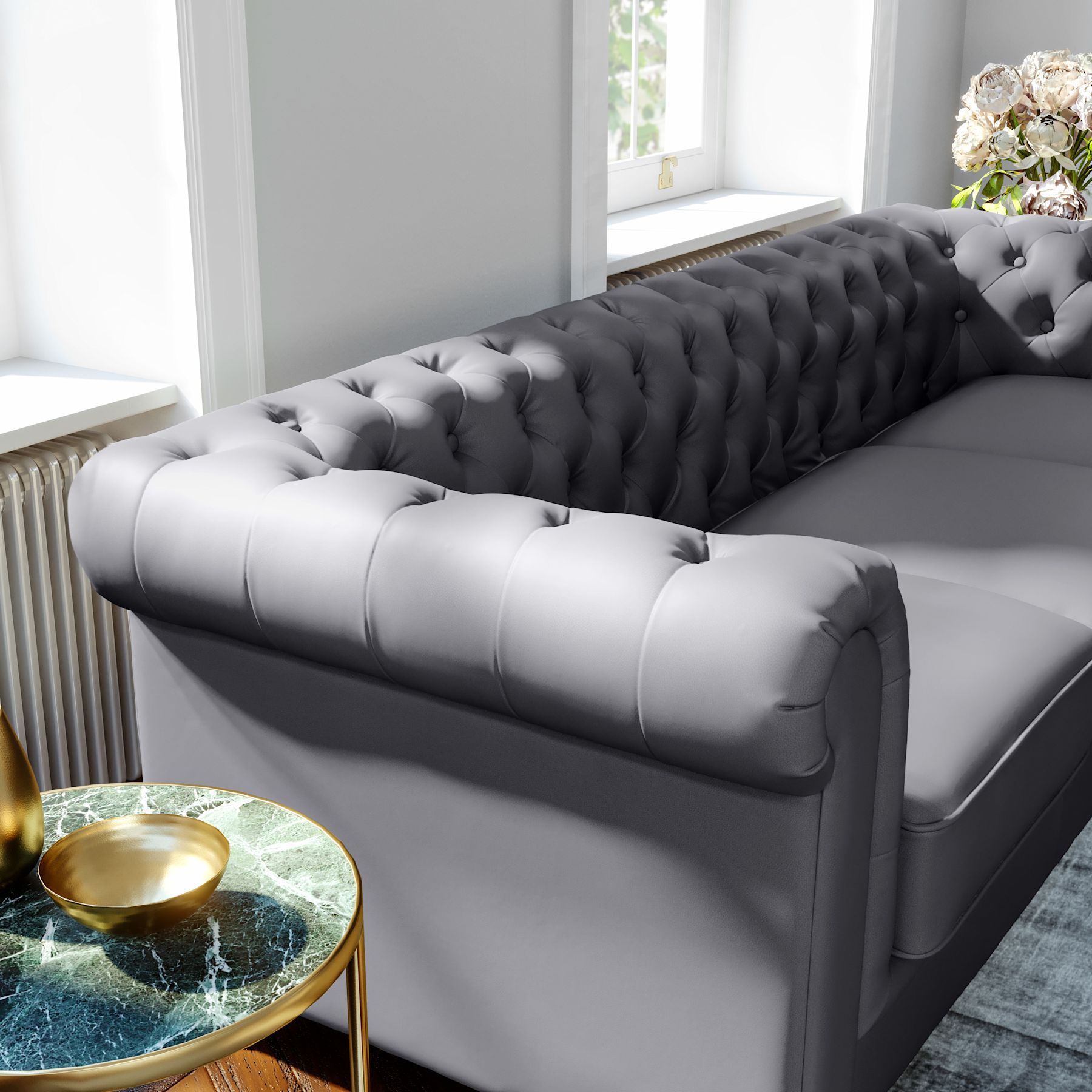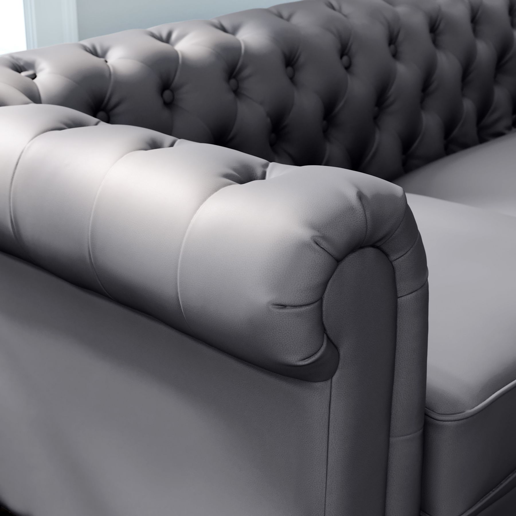 Hampton 3 Seater Chesterfield Sofa, Grey Premium Faux Leather