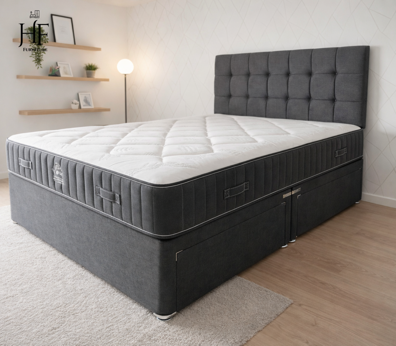 Upgrade your bedroom with the ultimate blend of style and comfort. Our HF Furniture Grey Divan Bed is a premium sleep solution designed for modern UK homes. Handcrafted with high-quality fabric and available in multiple sizes, this set includes a sturdy divan base, a matching headboard, and your choice of a luxury mattress. Enjoy the peace of mind with Cash on Delivery, a 2-Year Warranty, and our 14-Day Return Policy.